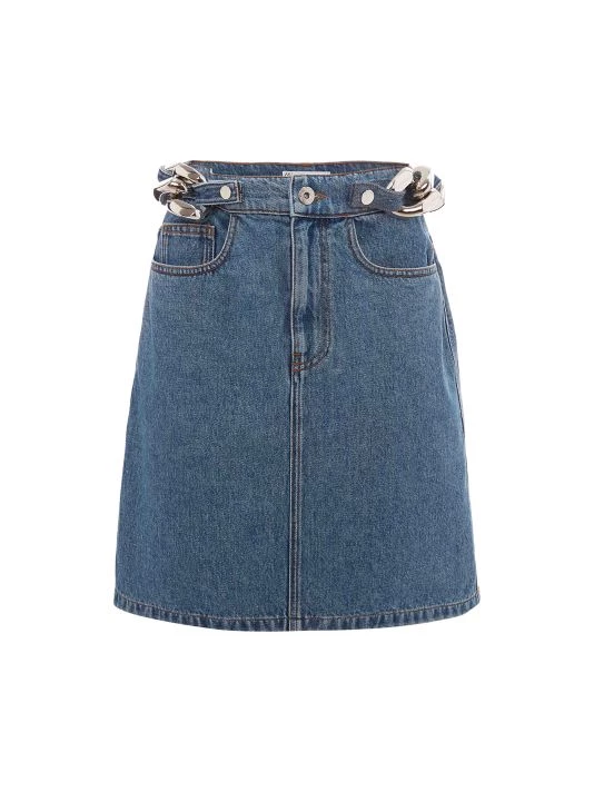 Made in Italy, JW Anderson’s denim skirt falls just above the knee. This five-pocket style is embellished with a chunky silver-tone chain-link belt.