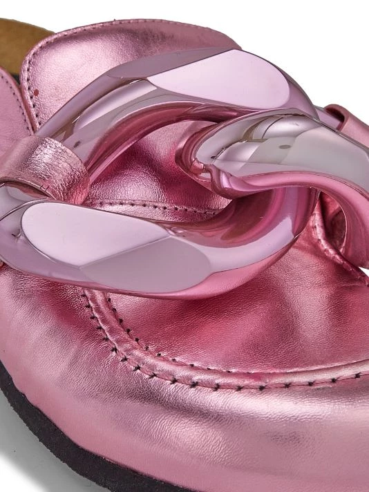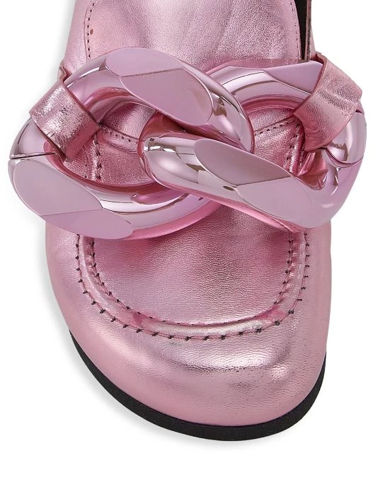 Made in Italy, JW Anderson’s loafers are crafted of eye-catching metallic leather. A matching oversized chain strap tops this statement-making pair.