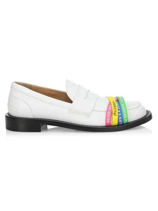 Made in Italy, JW Anderson’s loafers are decorated with elastic bracelet straps. This statement pair is crafted of rich leather.