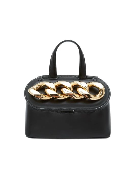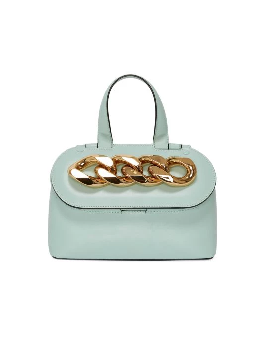 Rendered in rich leather, this contemporary bag flaunts oversized chain-link hardware.