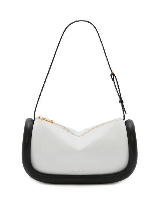 Made in Spain, the Bumper baguette by JW Anderson is crafted of colorblocked leather. This rectangular-shaped silhouette is designed with padded tubular edges.