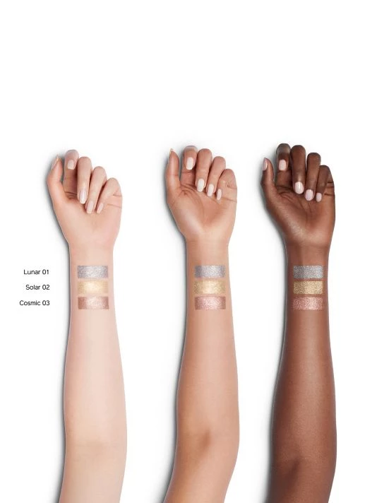 Use fingertips or a brush to glide this weightless highlighter along the high points of the face, for a head-turning glow, or layer it over makeup for a quick dose of celestial sparkle. Or, apply with a brush to concentrate the formula to the inner corners of the eyes or outline the cupid’s bow of the lip.